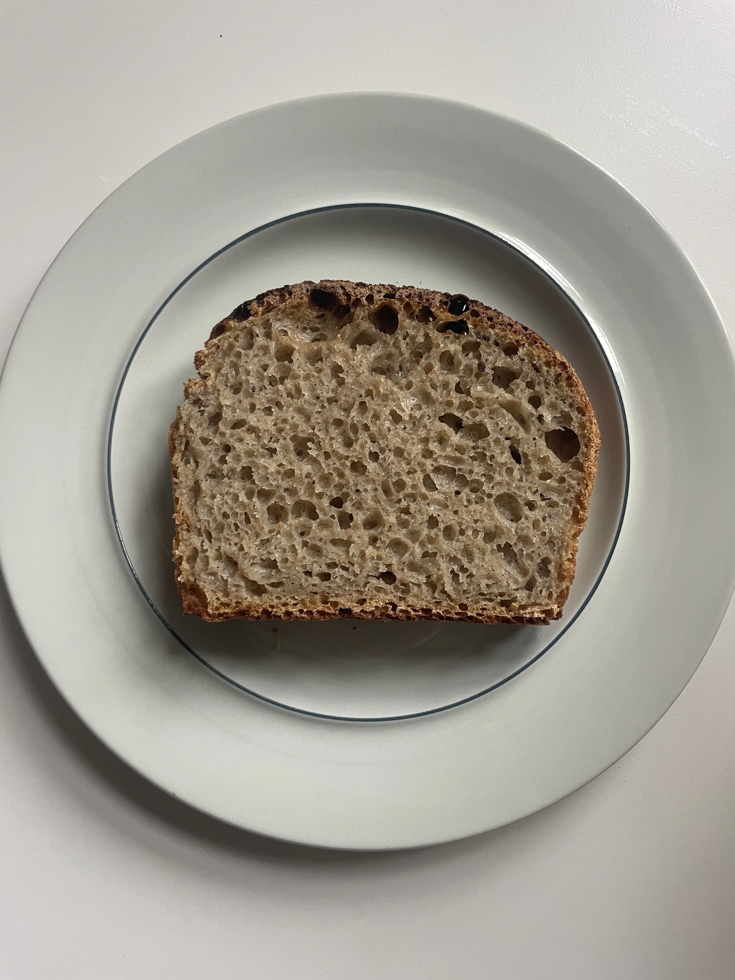 Bemærk at der kræves to dage for at lave brødet, men arbejdstiden er minimal. Det her er et hverdagsbrød, som har et godt fuldkornsindhold uden at gå på kompromis med krummen. Passer perfekt til en ostemad eller en sandwich med salat, syltet grønt og crunchy bønnedip.
